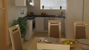 This apartment with nice shades of blue and a beautiful bathroom will help you to relax after work.